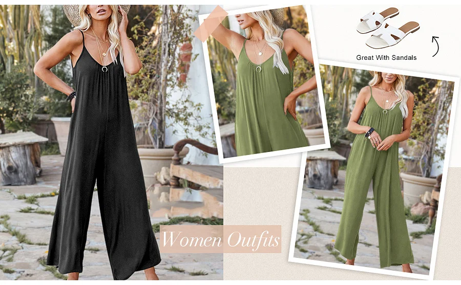 Prinbara Womens Casual Sleeveless Jumpsuits Wide Leg Pants Rompers