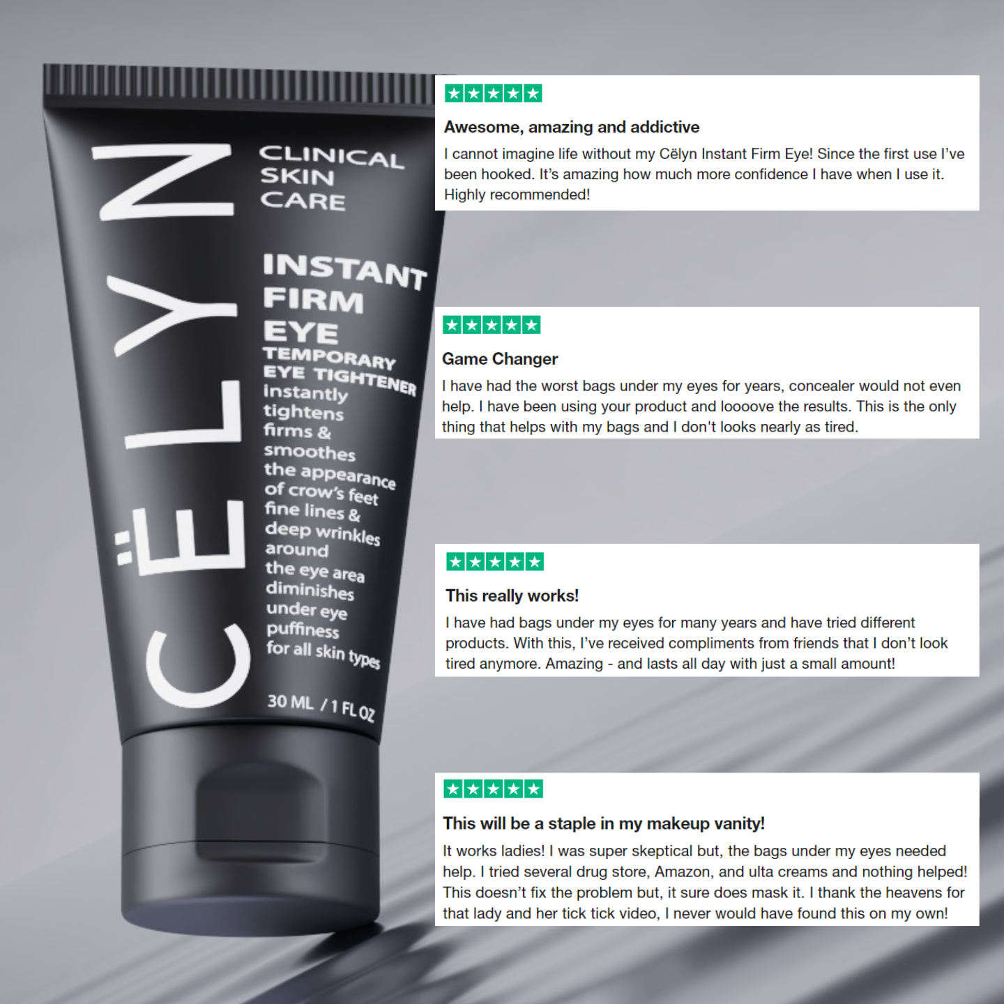 Thanks to our Cëlyn Instant FIRMx Eye Tightener, you can achieve an amazing youthful & rested glow in just 5 minutes - all without expensive treatments or procedures.