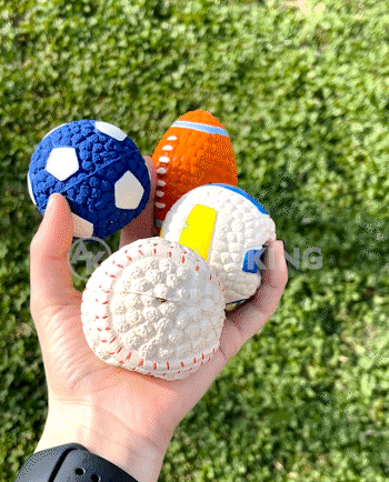 The width of Chewball™ is approximately 14cm or 5.5in, and they come in 4 different shapes (styles): Football, Volleyball, Soccer, Baseball.