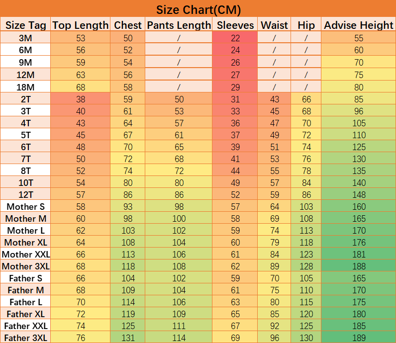 Answer : For example,Size 6T for Kids,Size M for Mother and XL For Father,