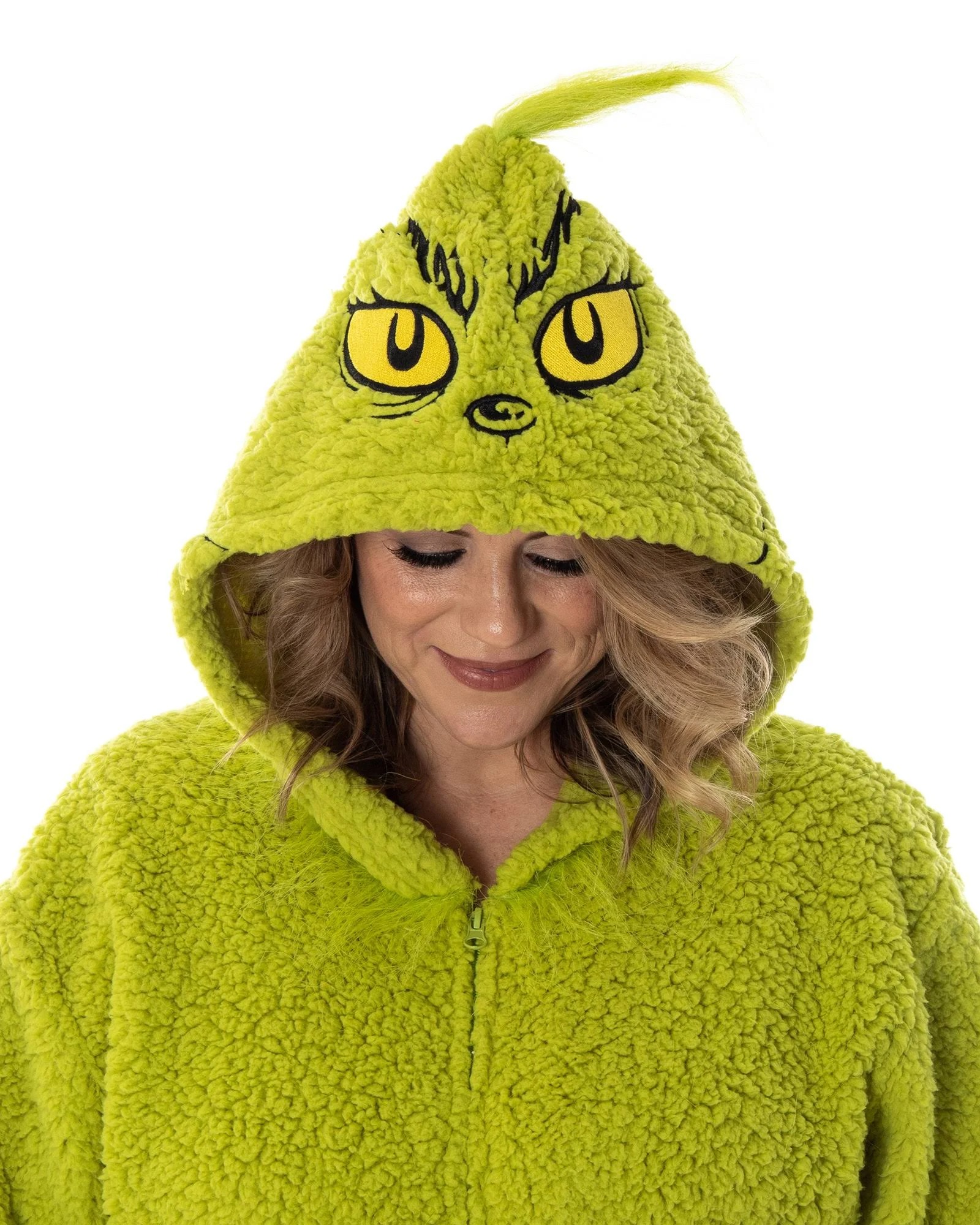 Dr.Seuss and the classic story, How The Grinch Stole Christmas, started as an inspiring children's tale and is now one of the most beloved holidays shows around! And yes, there are even Max the Dog costumes for pets!! You can have an all Grinch costume pajama party with about anyone in your family! The boys, girls, men's and women's sizes have a detailed embroidered face design on the hood with a full zip design. The 3 months through 5T come with a skull cap beanie for the safety of your child. Both the hood or the beanies feature a green tuft of hair sticking up on top. The Max the Dog pet costume features floppy ears and a single reindeer horn with a ribbon just like the classic cartoon! All of the Grinch pajama outfits and the Max the Dog costume pajama are a super soft and fluffy sherpa fleece 100% polyester