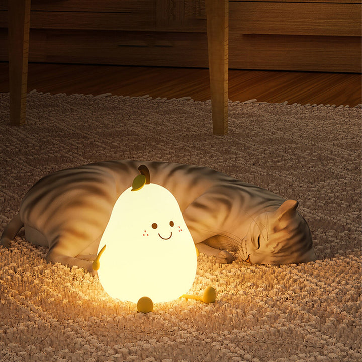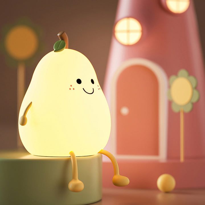 Switch the button to activate the pear night light. Tap the pear body to change brightness. kids’ night light is extremely durable and easy to use for kids at playtime or bedtime.