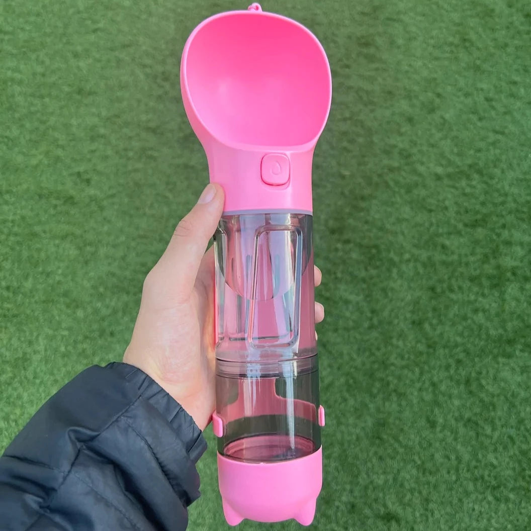 If your dog finishes drinking and there is water left in the bowl, you can tilt the bottle and drain the water back into the water storage compartment and then flick the water button upwards to seal it in. Holds up to 300ml to water.
