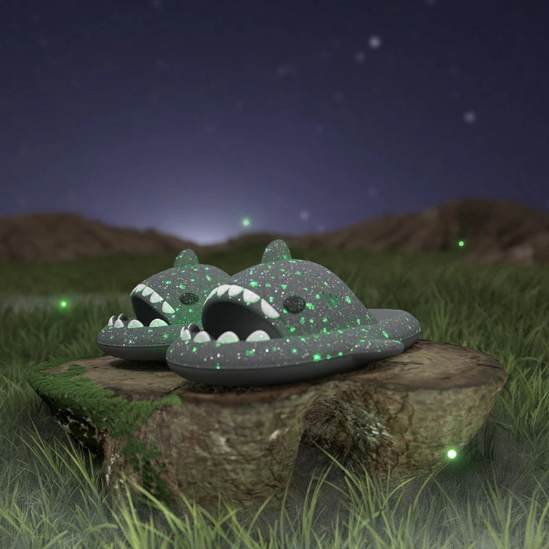 Walk On Stars With the Hottest Summer footwear, Glow in the Dark Galaxy Shark Slides™...
