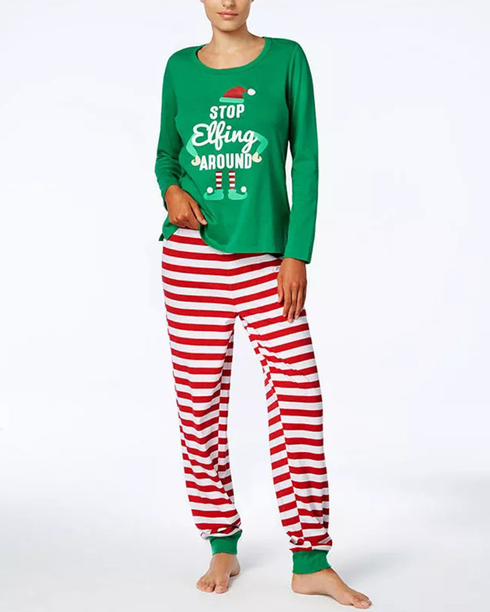 Product Name:Green Santa Red Striped Christmas Pajamas