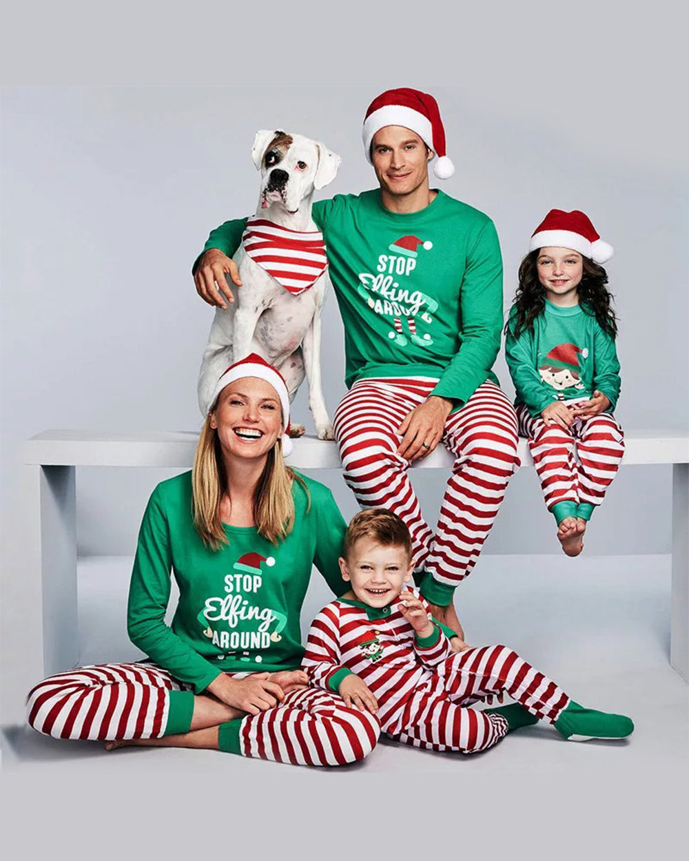 Green Santa Red Striped Christmas Pajamas