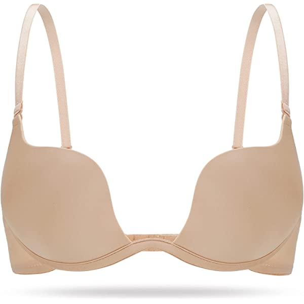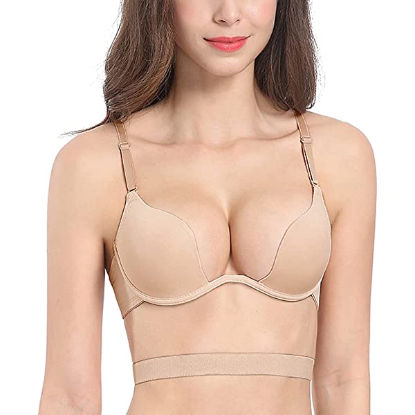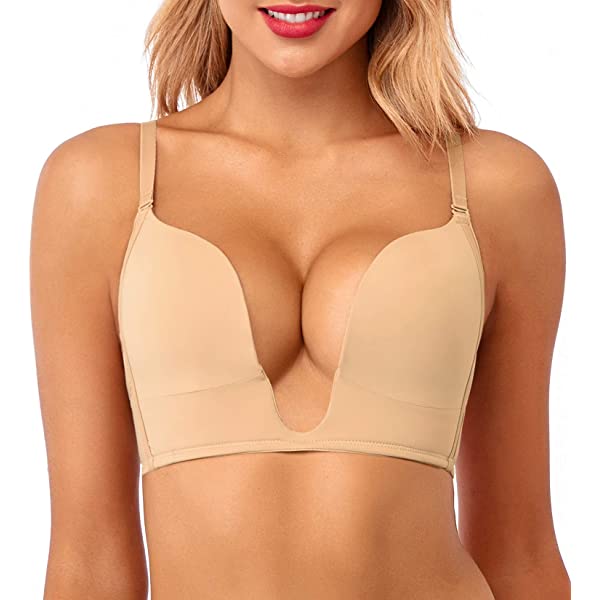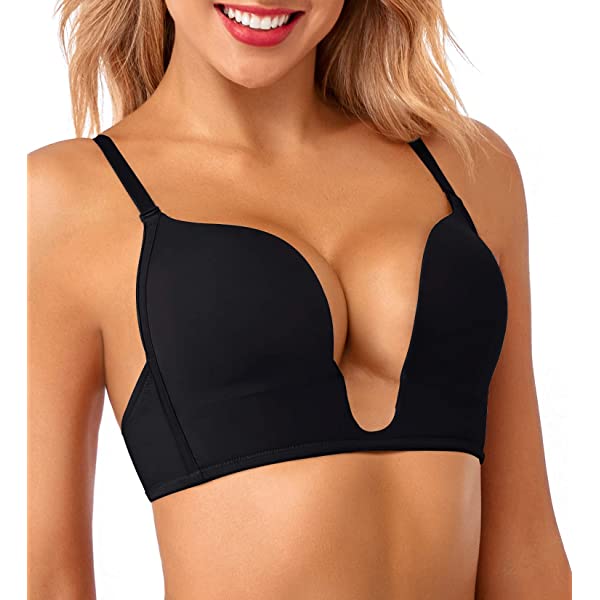 GENTLE MATERIAL – Made of 80% Nylon, 20% Spandex. Soft fabric with a smooth surface, comfort you every day by offering a friendly touch to your skin. No digging and sagging. Perfect Christmas gifts for women!. ANY OCCASIONS – Allows you to wear latest wedding, prom and special occasion fashion confidently without the worry of an awkward situation. Not designed to be worn strapless. DEMI COVERAGE – This deep U plunge bra is made with unique demi coverage for major cleavage, adding charms in plunging necklines and low back fashion choices. MULTIWAY WEAR – Comes with fully adjustable and convertible straps, it’s easy to personize your fit and switch between tradition straps, criss-cross, halter or even be replaced by transparent straps. U-PLUNGE DESIGN – Unique U-shape plunging cups and high cut sides designed to enhance cleavage while allowing you to wear deep plunging outfits.