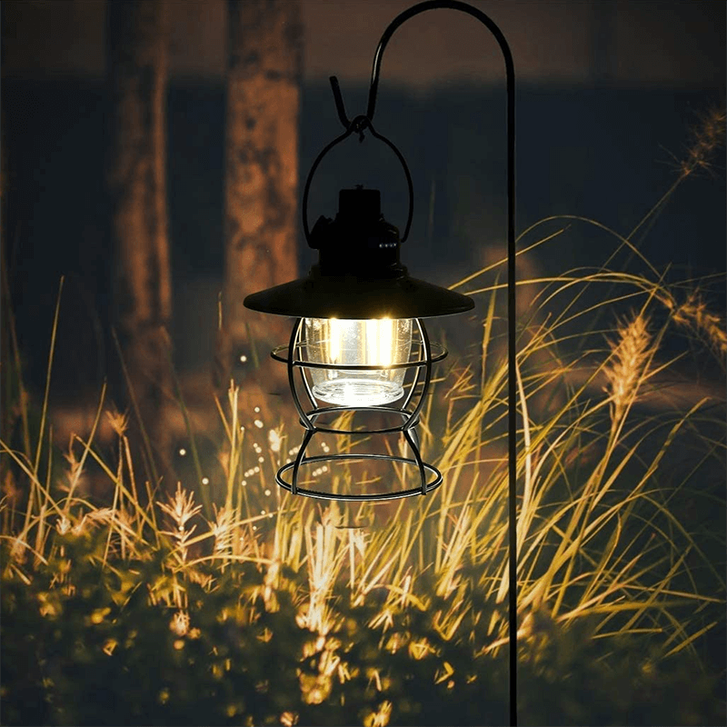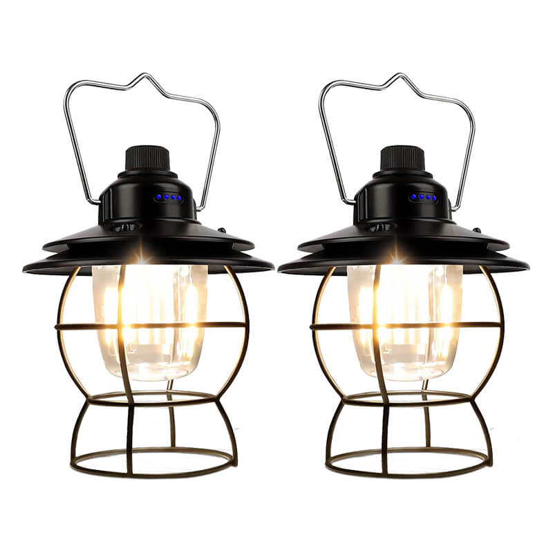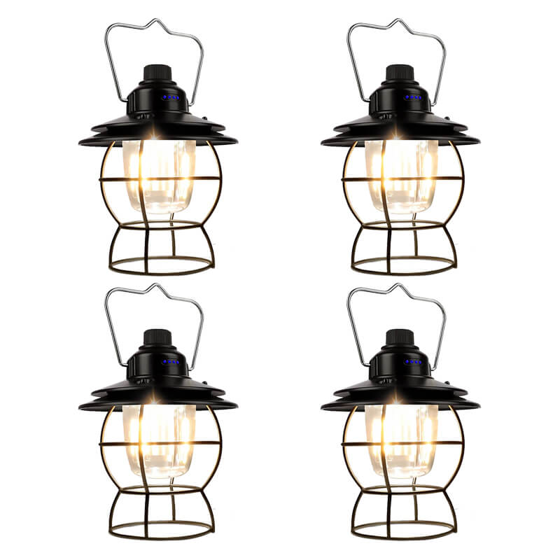 The vintage lanterns turn the top knob clockwise to infinitely dim 3 different lights. This rechargeable led lantern also be used as a power bank to charge your phone. Old railroad lanterns are made of ABS and aluminum alloys, the special spray paint process makes them more durable. It adopts IPX4 waterproof technology, which is not afraid of rainy weather or splashing water in all directions. Foldable handle for easy portability or hanging on trees, walls, etc.