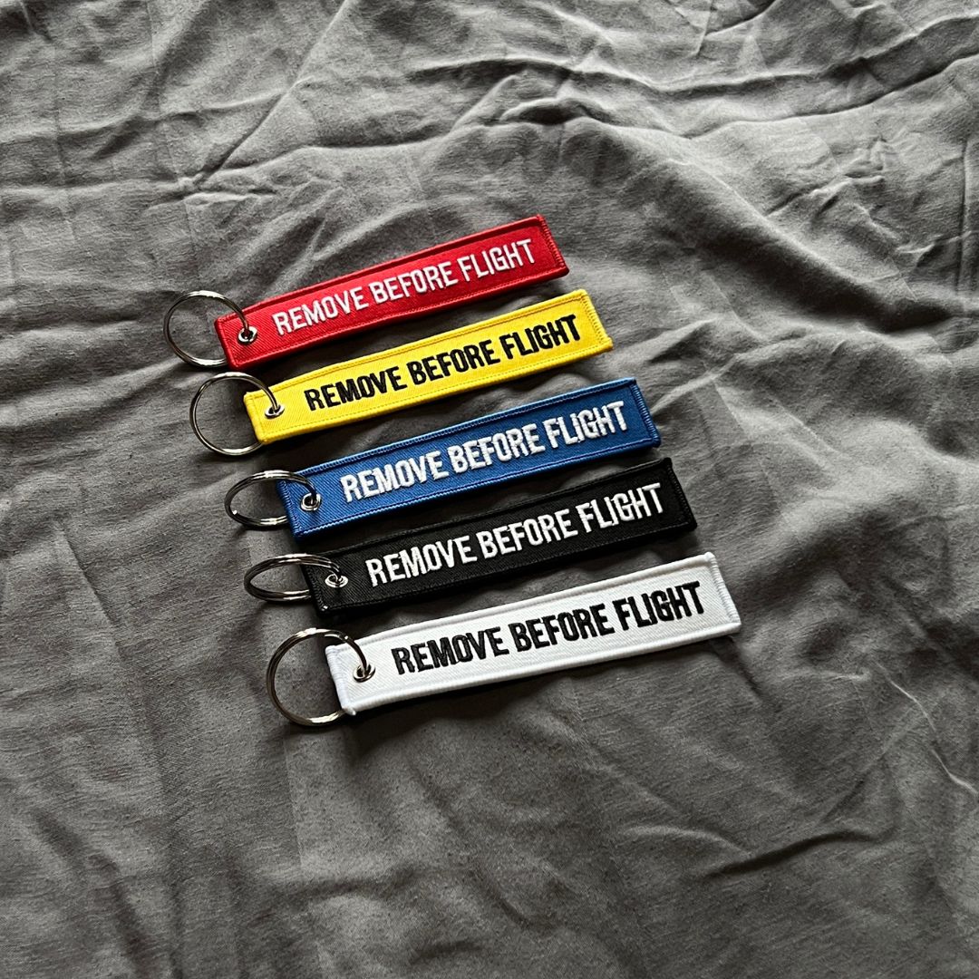 Introducing our Keychain Tag, the perfect accessory not only for keys but also for our keychain spinners. At 13 cm long the Keychain Tag is designed to enhance your spinning experience by providing an additional grip and making it easier to spin your keys. The Tag is made from high-quality cloth material that is lightweight and easy to carry with wherever you go. This compact accessory also features a durable key ring that easily attaches to your keys and our keychain spinners. With the iconic "Remove Before Flight“ warning label printed on the front, it adds a unique and fashionable touch to your daily carry. With its durable construction, ease of use, and attractive design, it's the perfect addition to your keychain collection.