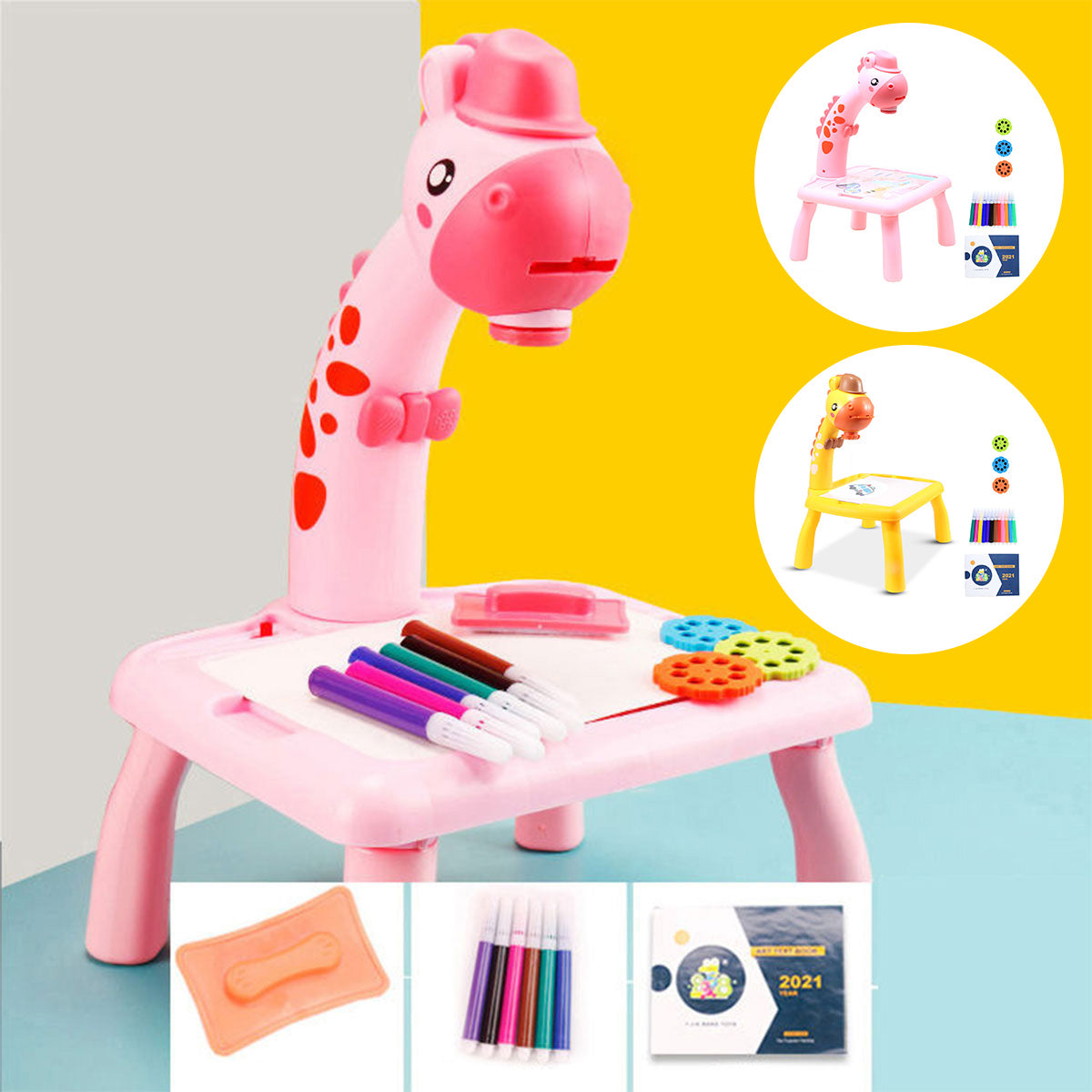 【Colorful Painting】: The drawing projector can project clear patterns of various colors, and the package is equipped with 12pcs colored pencils that are very suitable for drawing. This funny projector toy enables your kids to express themselves artistically. It can improve your kids' creativity and imagination, exercise hand-eye coordination.