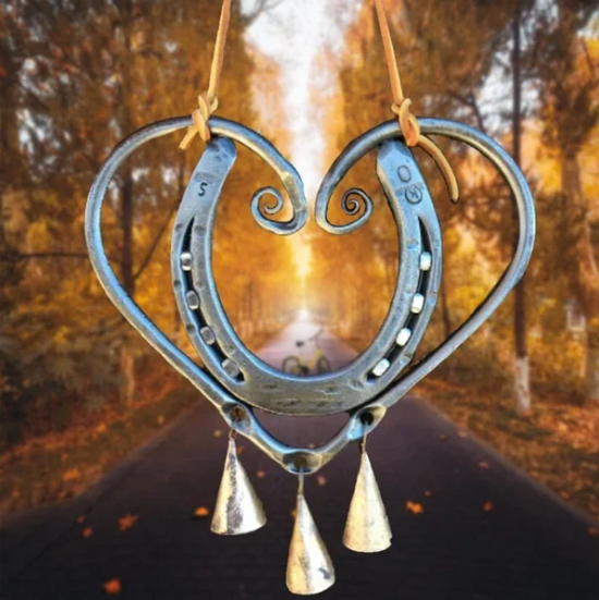 Materials: recycled, horseshoe heart,outdoor, metal, bell.