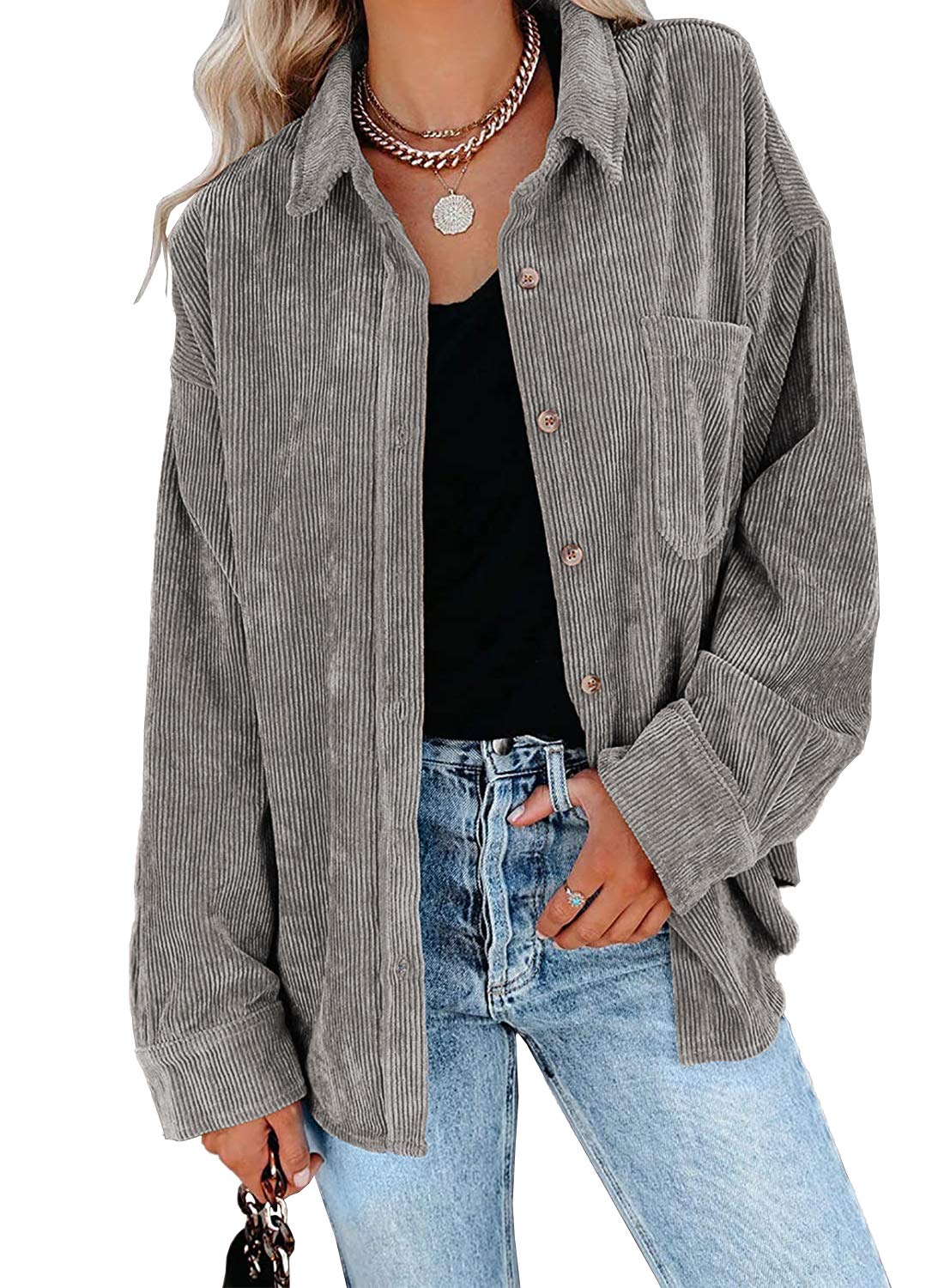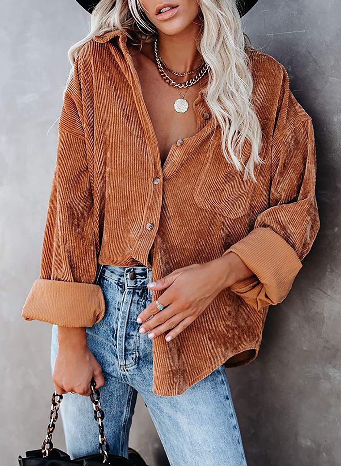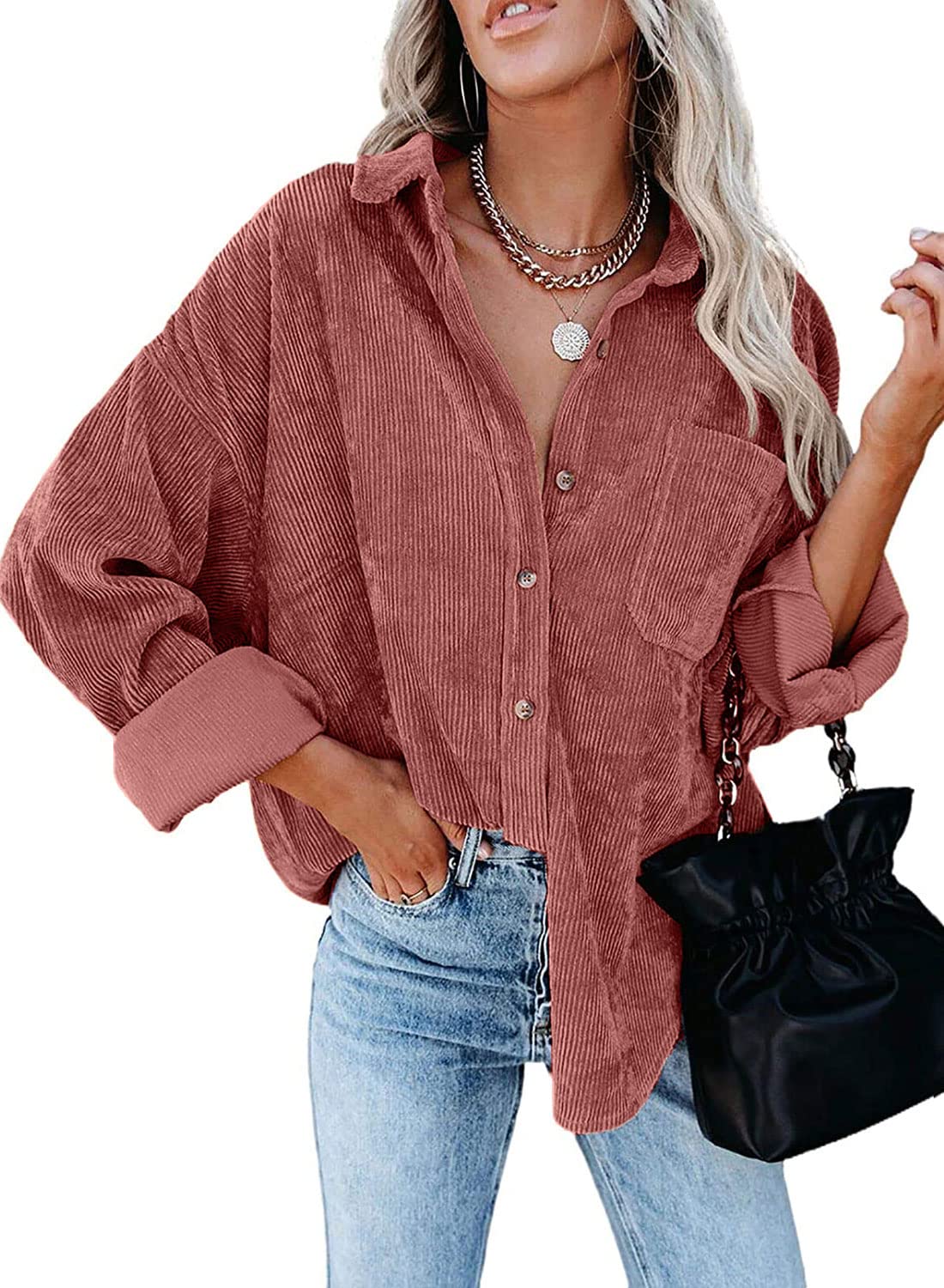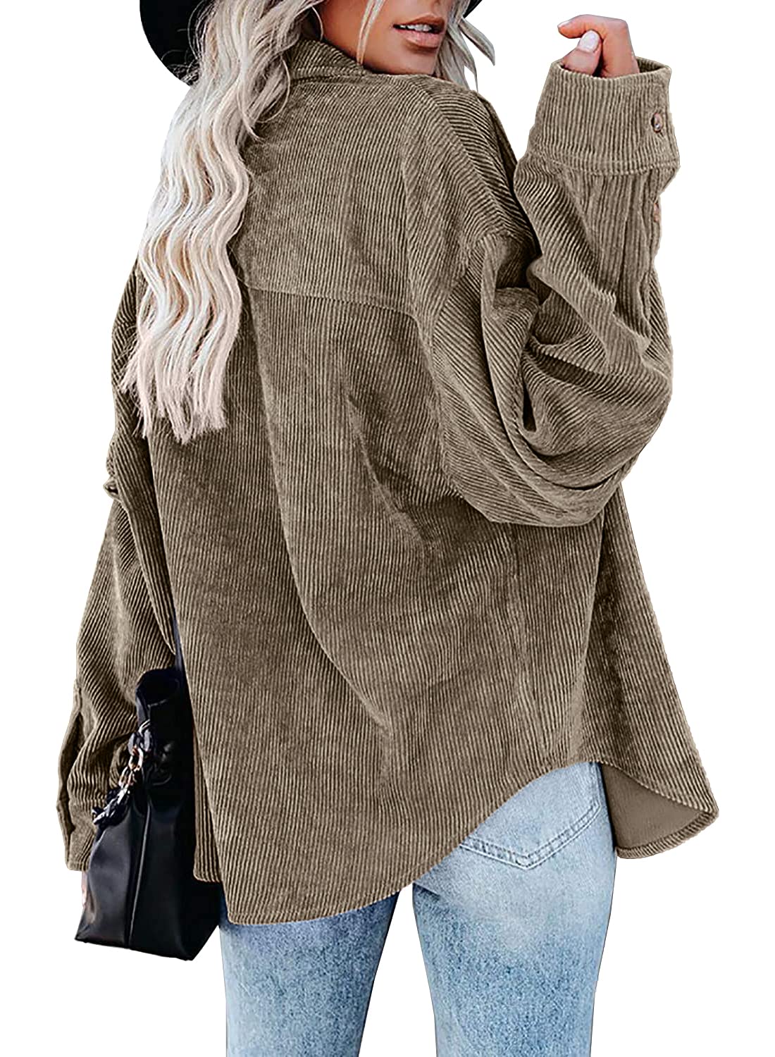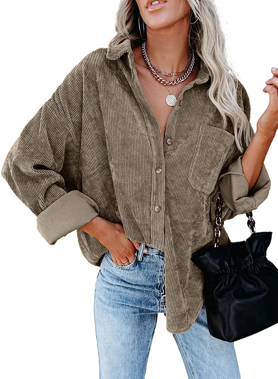 • Shacket Women Corduroy Shirt, casual street style, can be paired with jeans skinny leggings, or tied over a tank for a casual look.