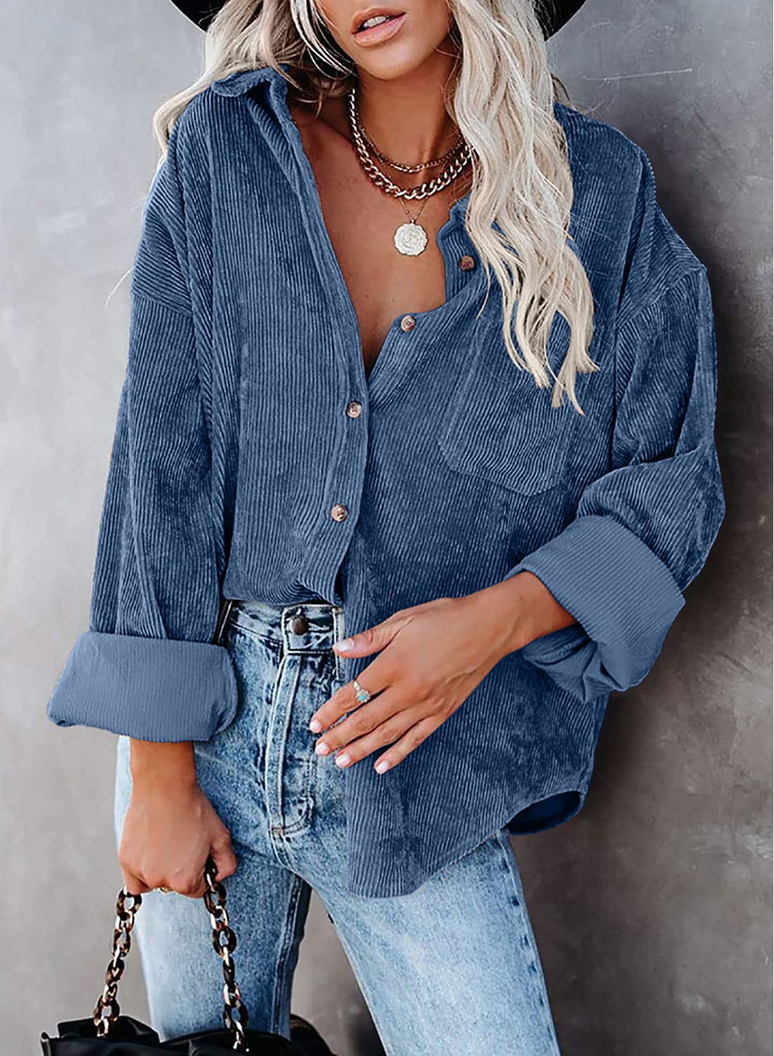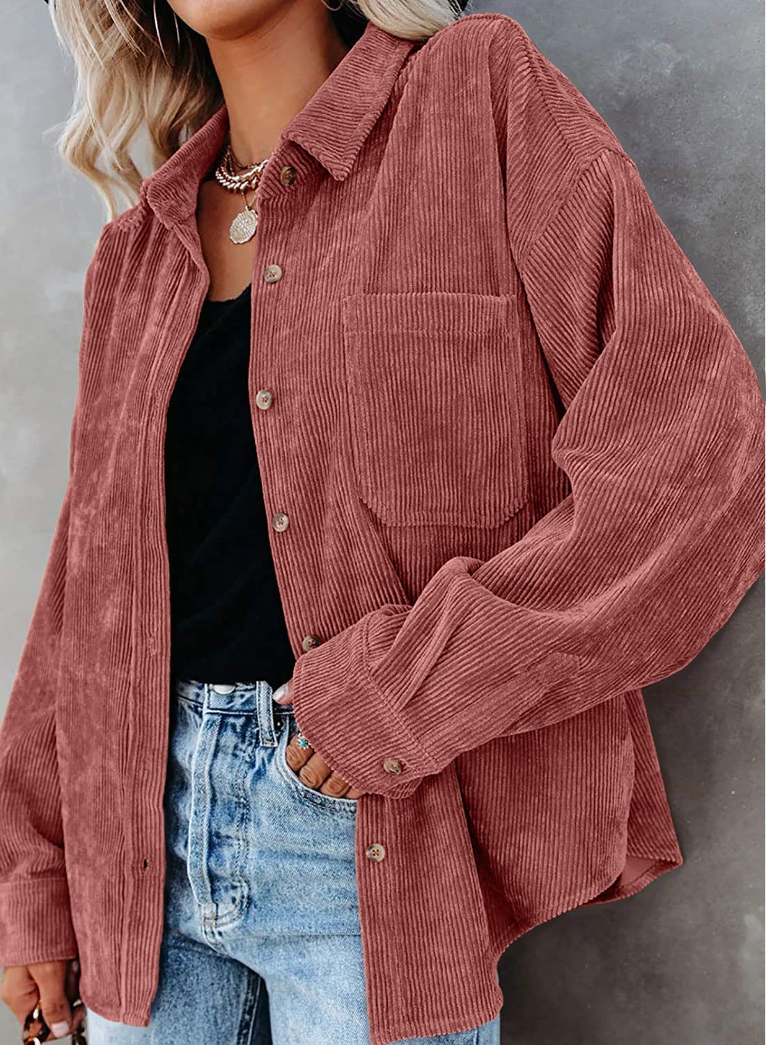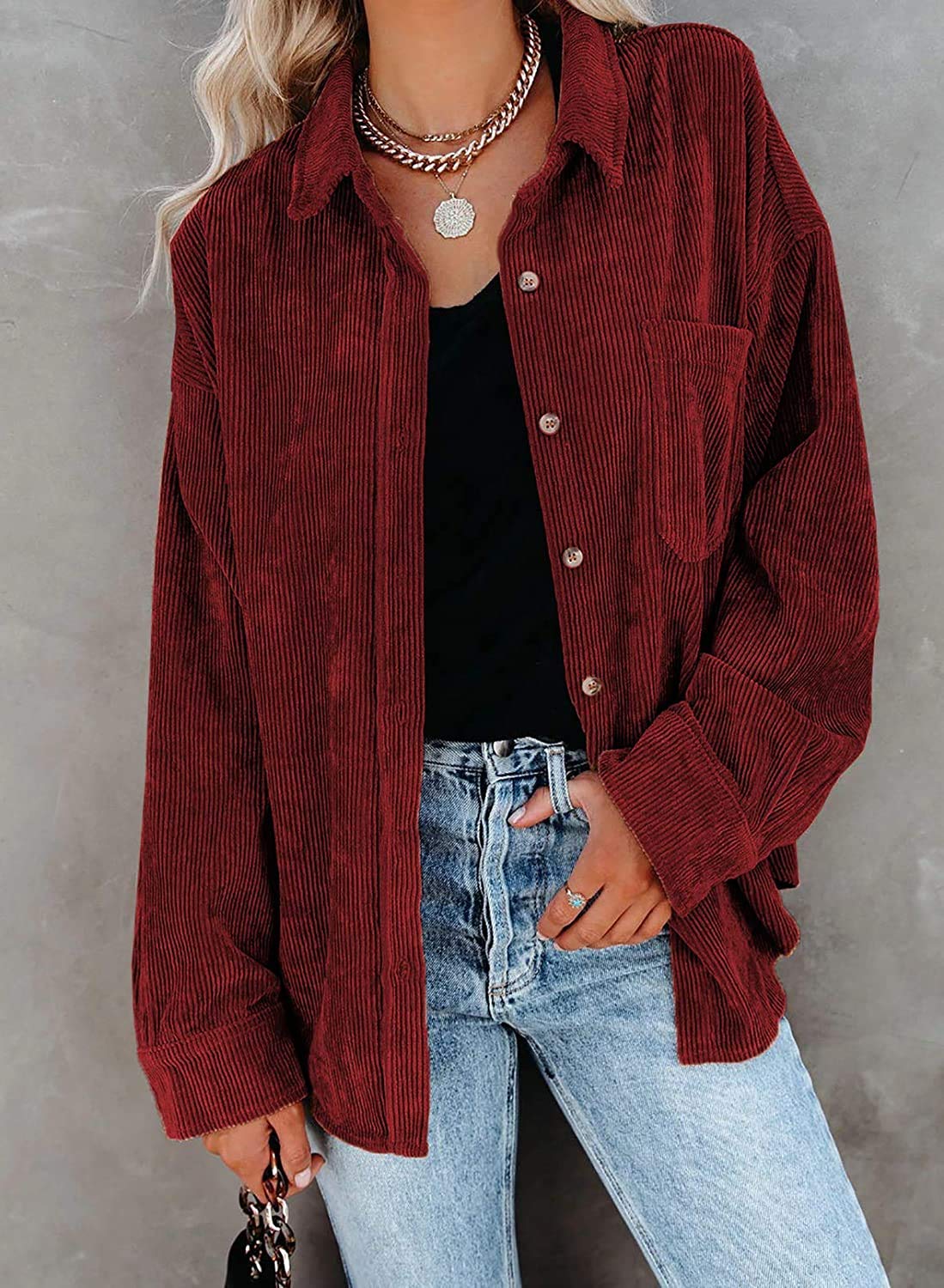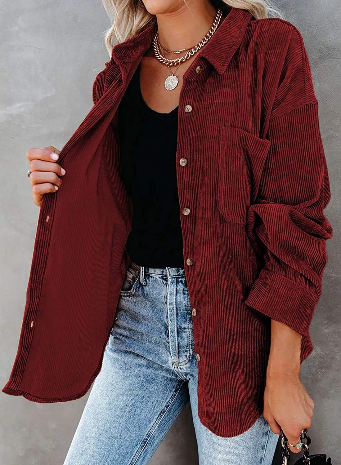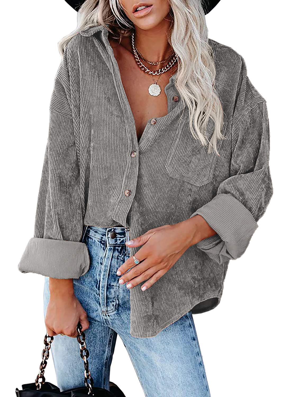 • Shacket Women Corduroy Shirt, casual street style, can be paired with jeans skinny leggings, or tied over a tank for a casual look.