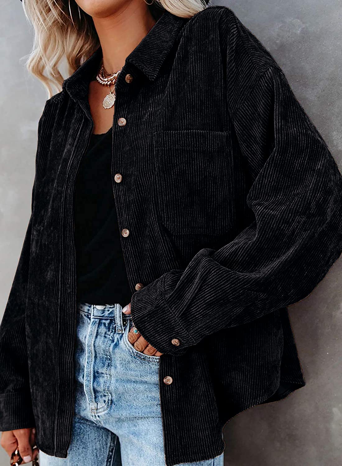 • So versatile is our Corduroy Button Down Collared Pocket Top that can be worn open as a jacket or closed as a top!