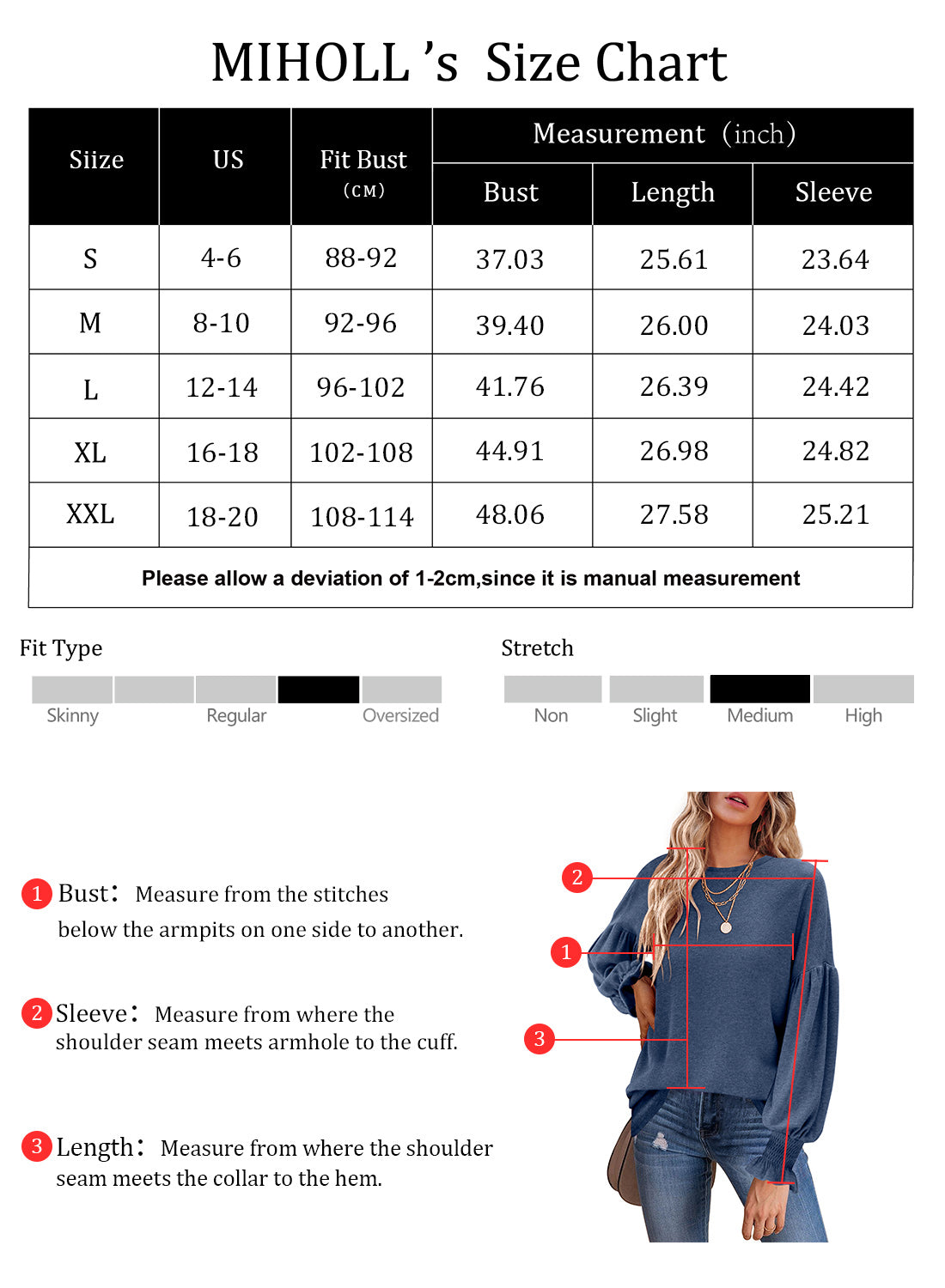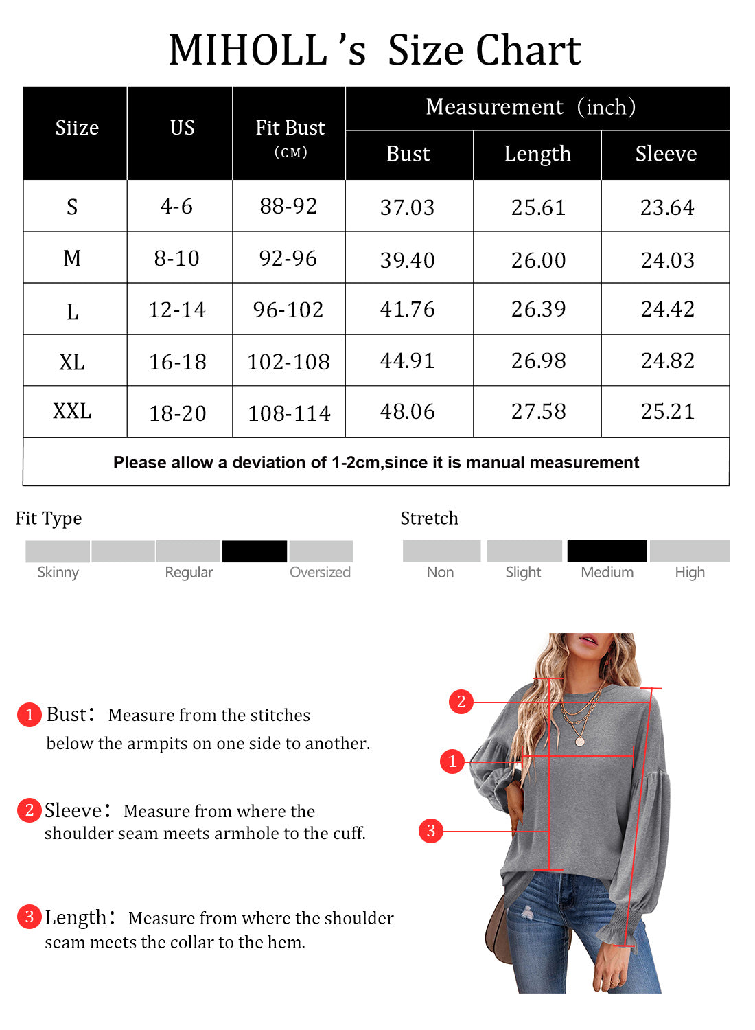 MIHOLL Womens Long Sleeve Top Crew Neck Ruffle Lantern Sleeve Casual Loose Blouse T Shirts