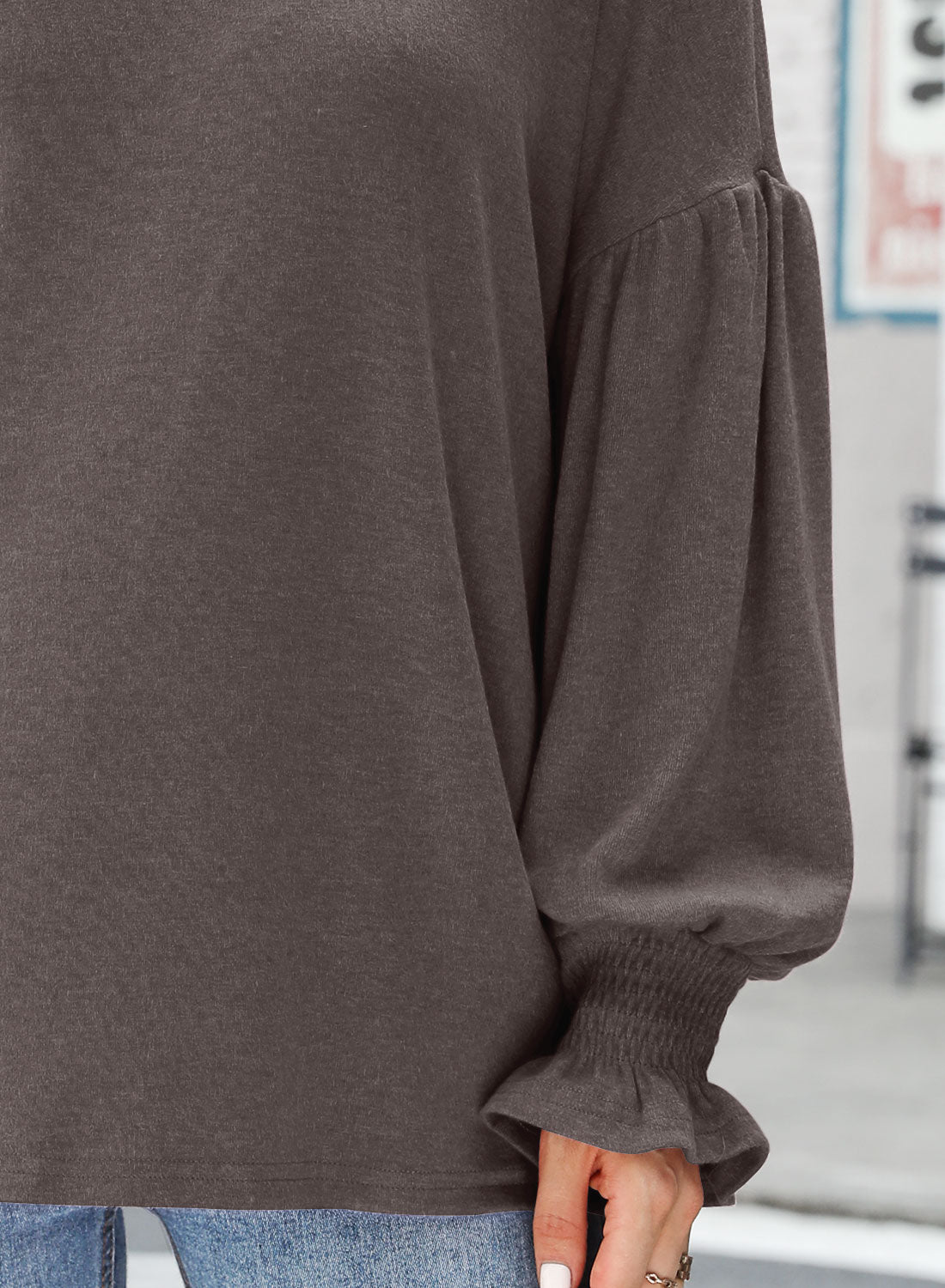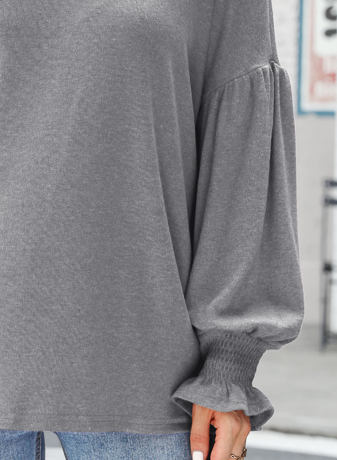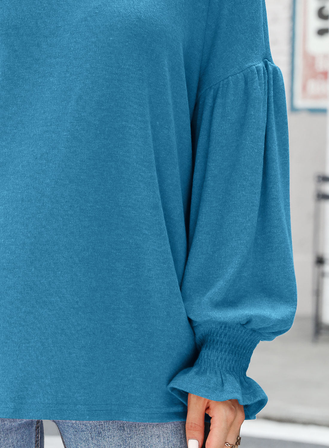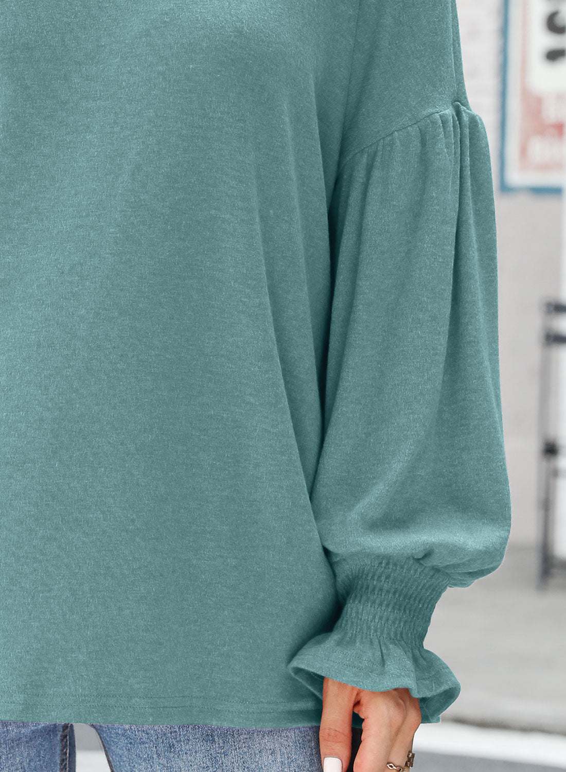 • This women's blouse features a trendy lantern sleeve. The flares cuffs add the perfect finishing touch. It makes this shirt so cute and fun!