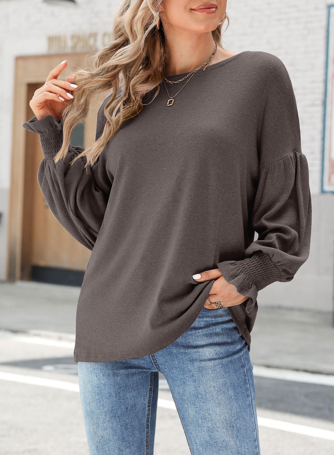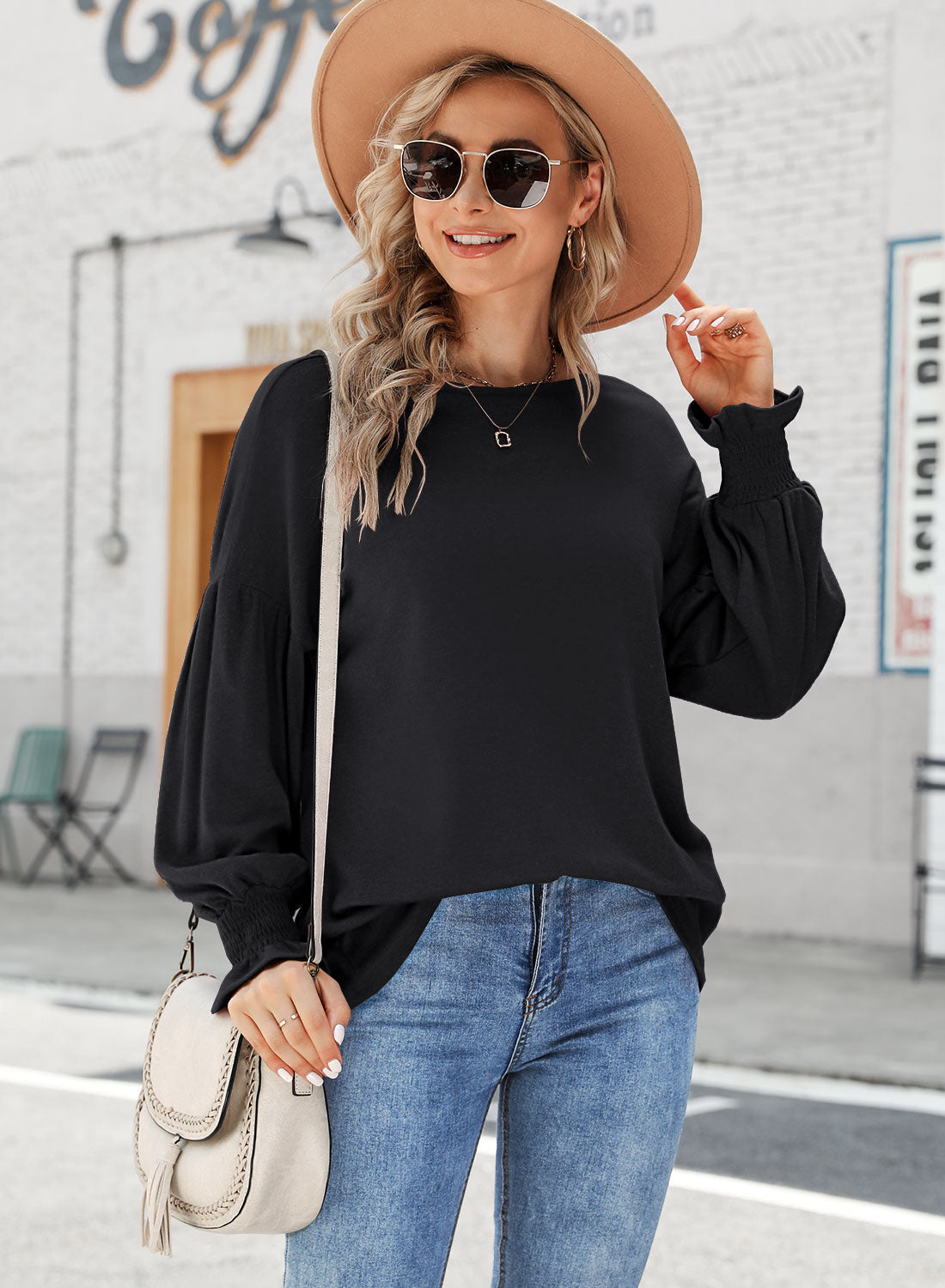 • Casual long sleeve tops, Crew neck, Ruffle sleeves, solid, Loose fit t-shirts