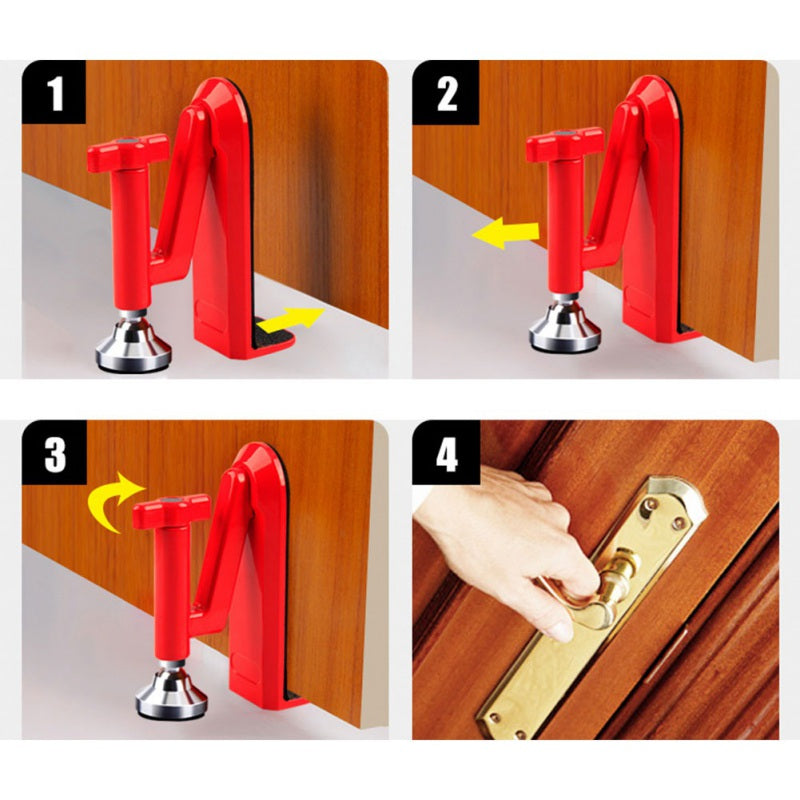 The Portable Door Jammer is finally here! No matter where you are the Portable Door Jammer is your personal door barricade device. It is designed with strong, lightweight steel that makes sure your doors stay completely closed, preventing unwanted entry in your home, room, Airbnb, and more!