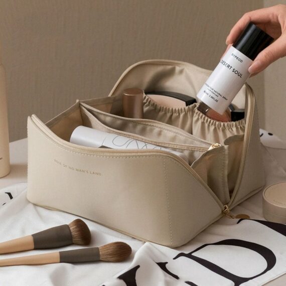 The sturdy makes bag is made from leather and premium materials with storage pockets to help clear the clutter and conveniently arrange all of your beauty products.