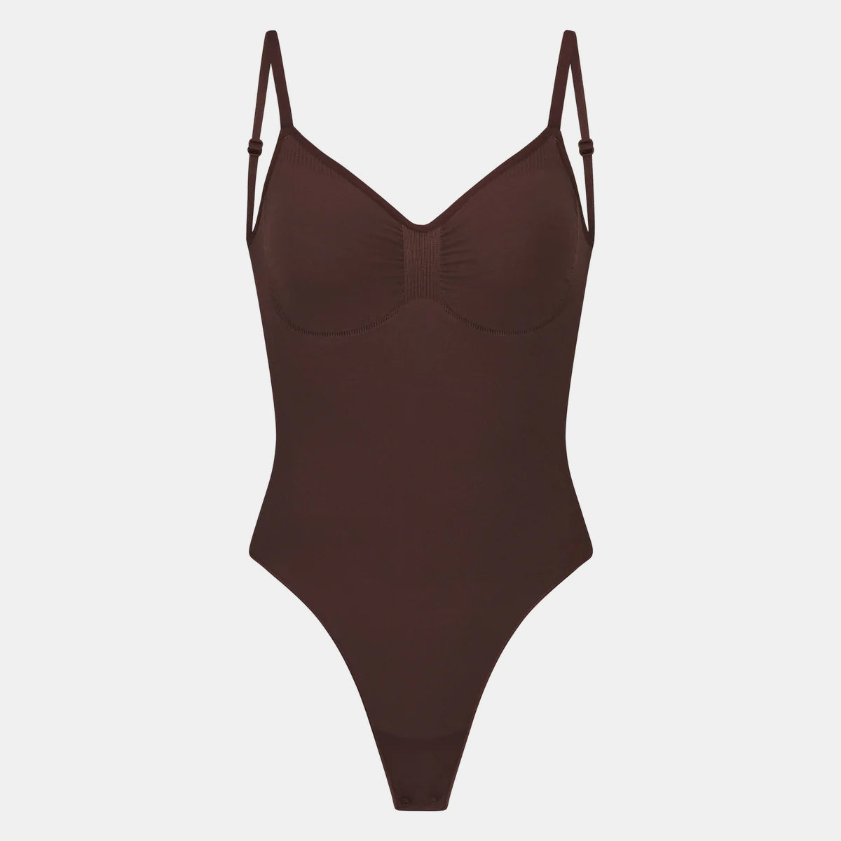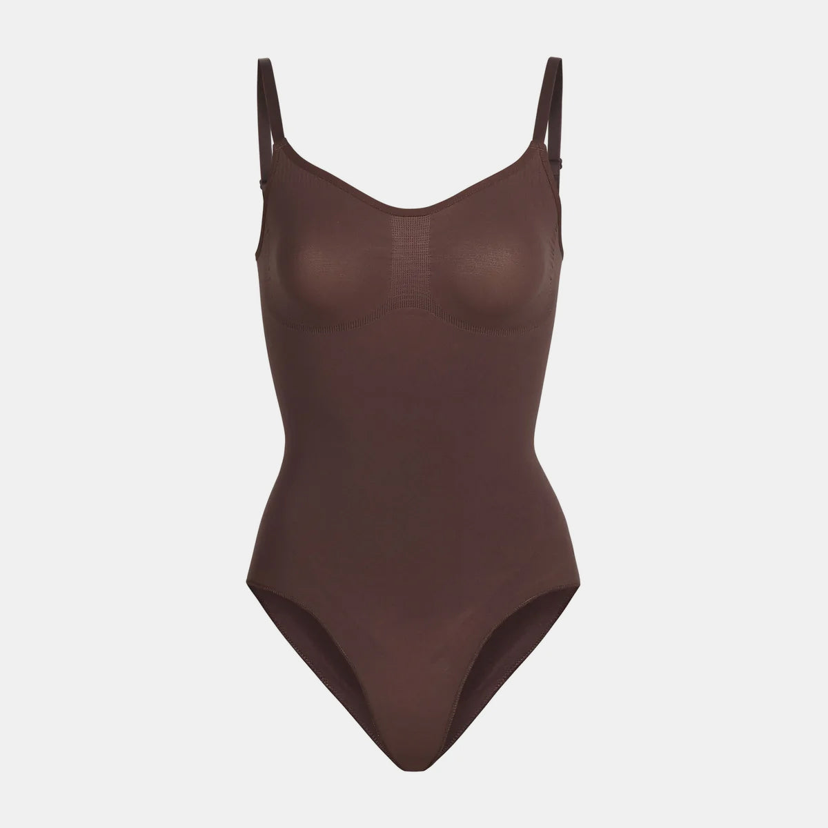 This everyday shapewear bodysuit holds in your core, shapes and lifts your butt, and provides support for your chest. Its whisper-soft and seamless construction make this sculpting piece essential for enhancing your body's natural shape.