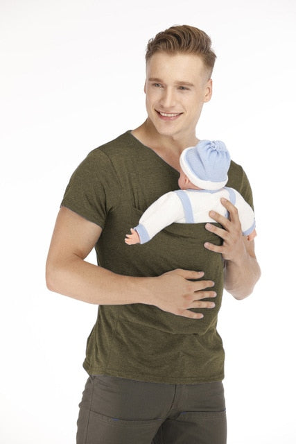 T Shirt Baby Carrier Safety Kangaroo Pocket Pregnancy Clothes Summer Short sleeve Mother Father Top for Feeding Big Nylon Cotton