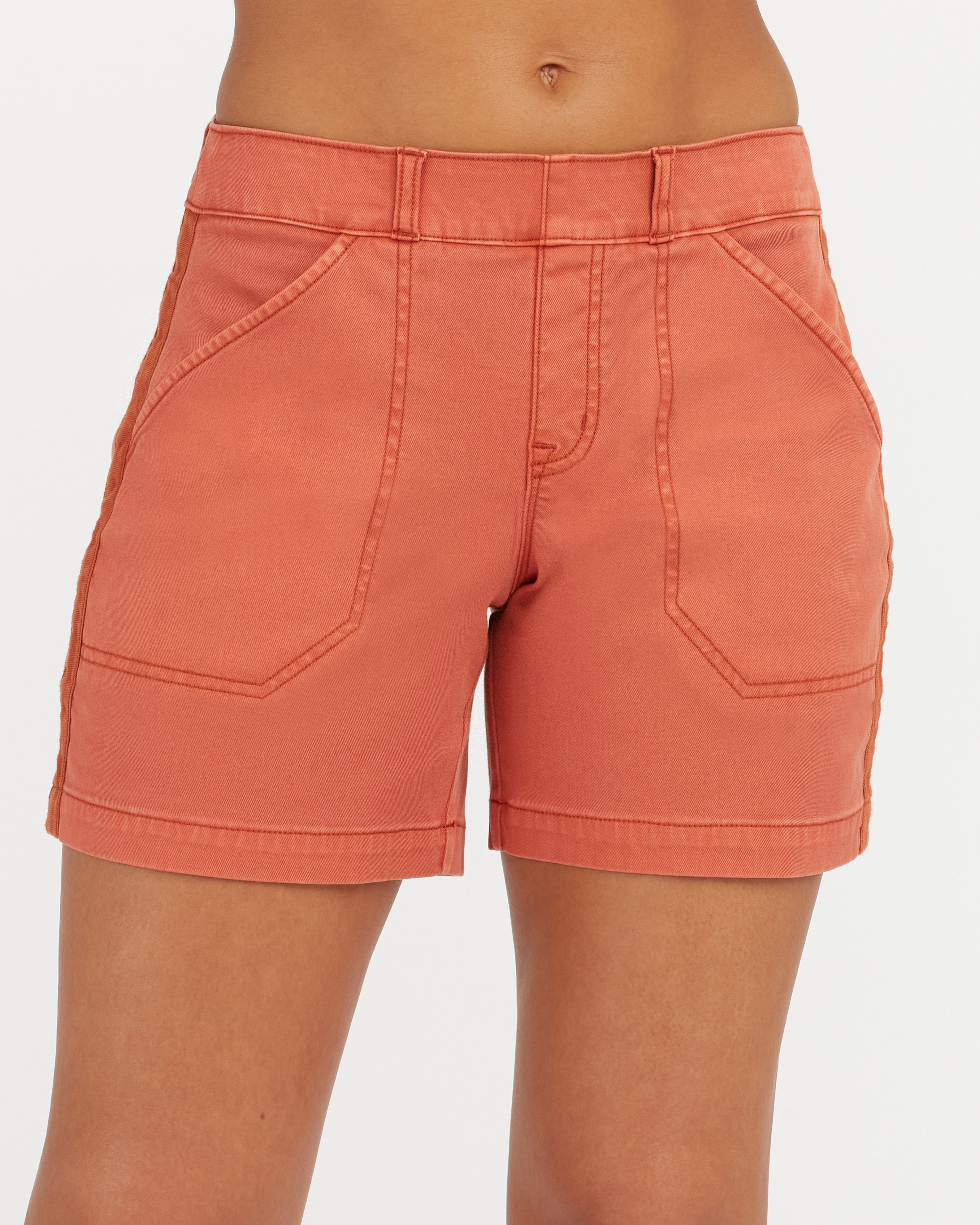 This super-soft patch pocket short, now in a 6” inseam, is the perfect addition to your wardrobe. With a pull-on design and hidden tummy shaping, these shorts flatter all over. This style is garment-dyed for a soft, worn-in look that will gradually fade as you wash, love and live in them. Make sure to give them some extra TLC – refer to the Dye Download below! It’s twill...with a twist!