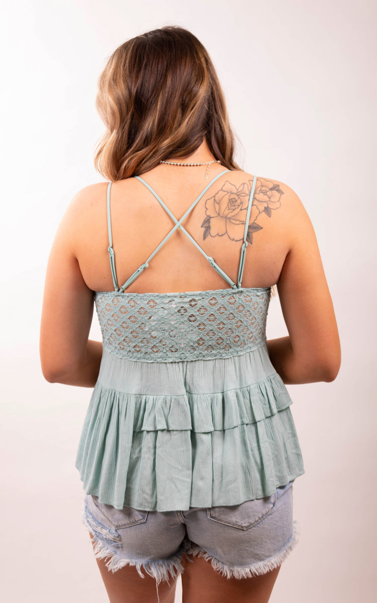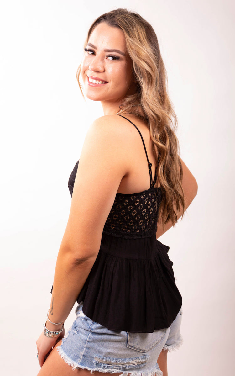 • The lace detailing with the floral textured adds a delicate touch to the top's design.