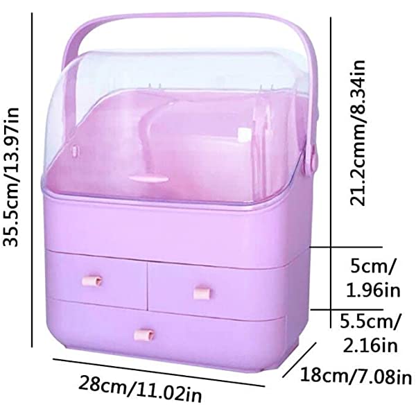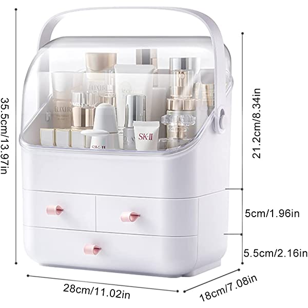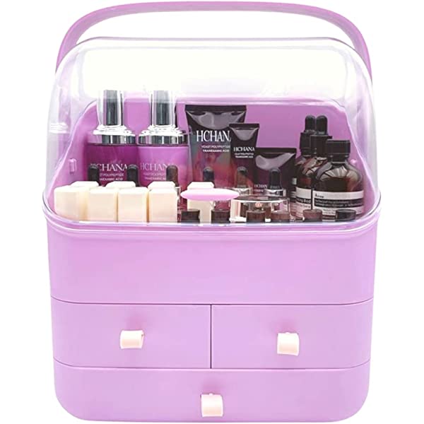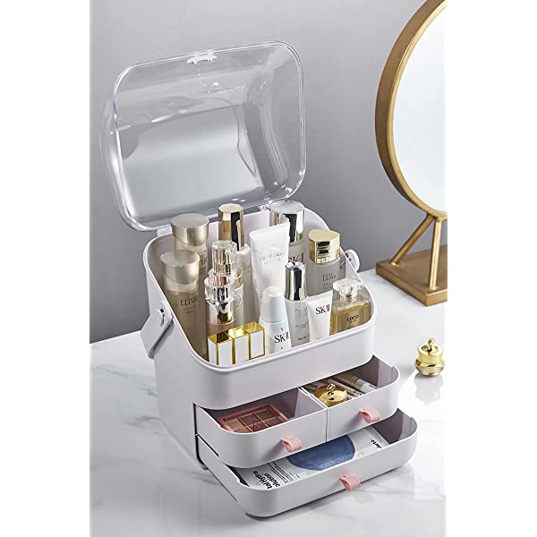 MADE TO LAST: no need to assemble, it is made of eco-friendly and odor free acrylic plastic. This cosmetic organizer is durable enough for long lasting use, and it takes up less space and keeps your place tidy. You can clean it easily with water. SLEEK AND PRACTICAL: crystal clear top cover with white finish body and equipped cute handles, this dust free cosmetic organizer with lid is complete and stylish to meet any room decor, it can be used in your bedroom, bathroom, dressing room, bedside table, vanity or countertop. EASY TO ACCESS: The crystal-clear cover to keep your cosmetics away from dust and water. There are three divided drawers for brushes, jewelry, lipstick, and it keeps clutter away on the countertop. Faster access to your cosmetics helps give you an efficient makeup routine and prevents children or pets from access. EXTRA LARGE CAPACITY: this makeup organizer box with cover stores your cosmetic items of different shapes and sizes while keeping them well organized. It can hold your jewelry, lipsticks, makeup brushes, all types of makeup, nail polishes and clippers, skincare and perfume bottle, and much more. IDEAL GIFT MAKEUP ORGANIZER: multifunctional and space saving, this dustproof makeup organizer is a wonderful gift for your friends, daughter, girlfriend, wife, mother on Christmas, New Year, Valentine's Day, Mother's Day, birthdays, and many other holidays. Premium & Eco Friendly Plastic.