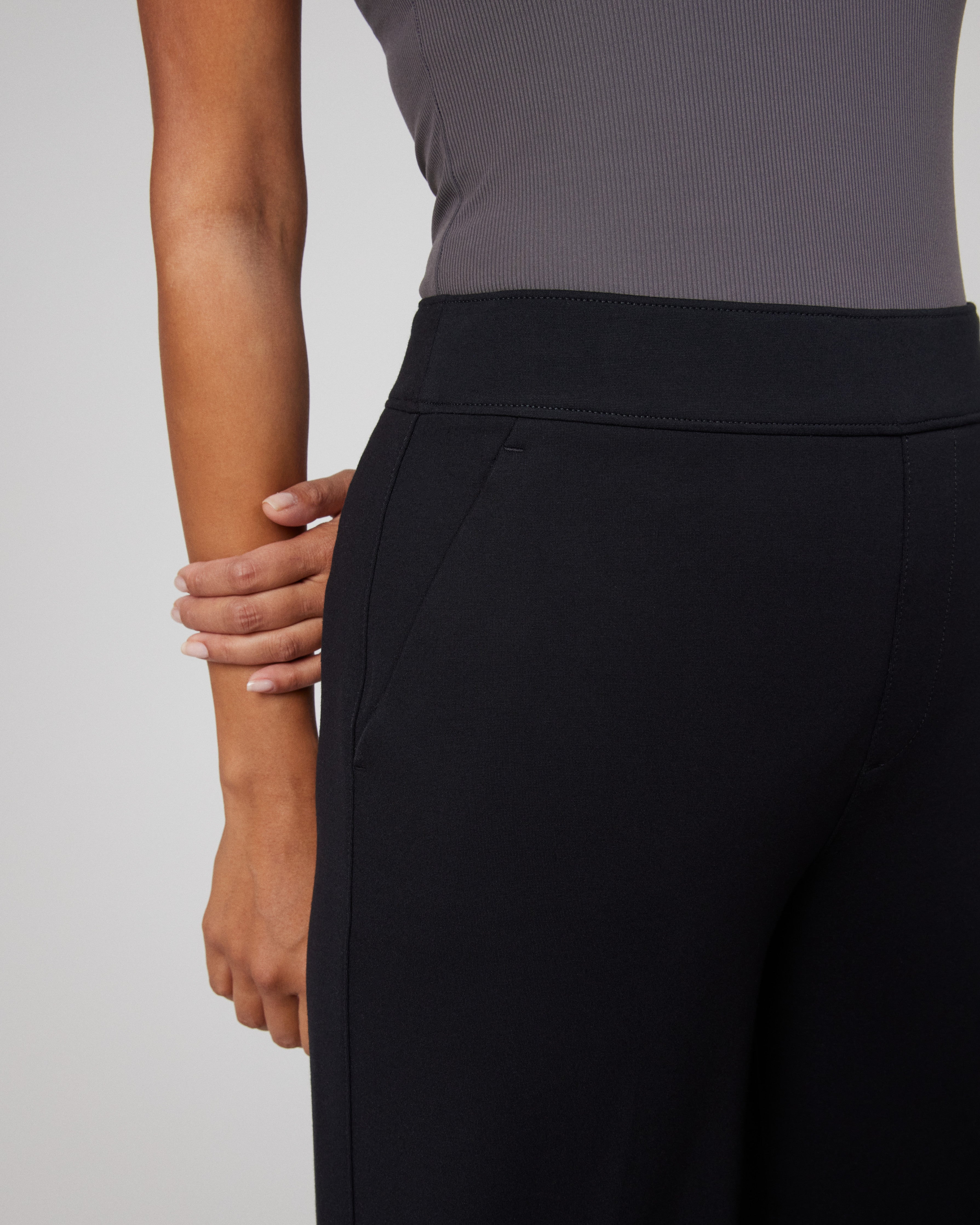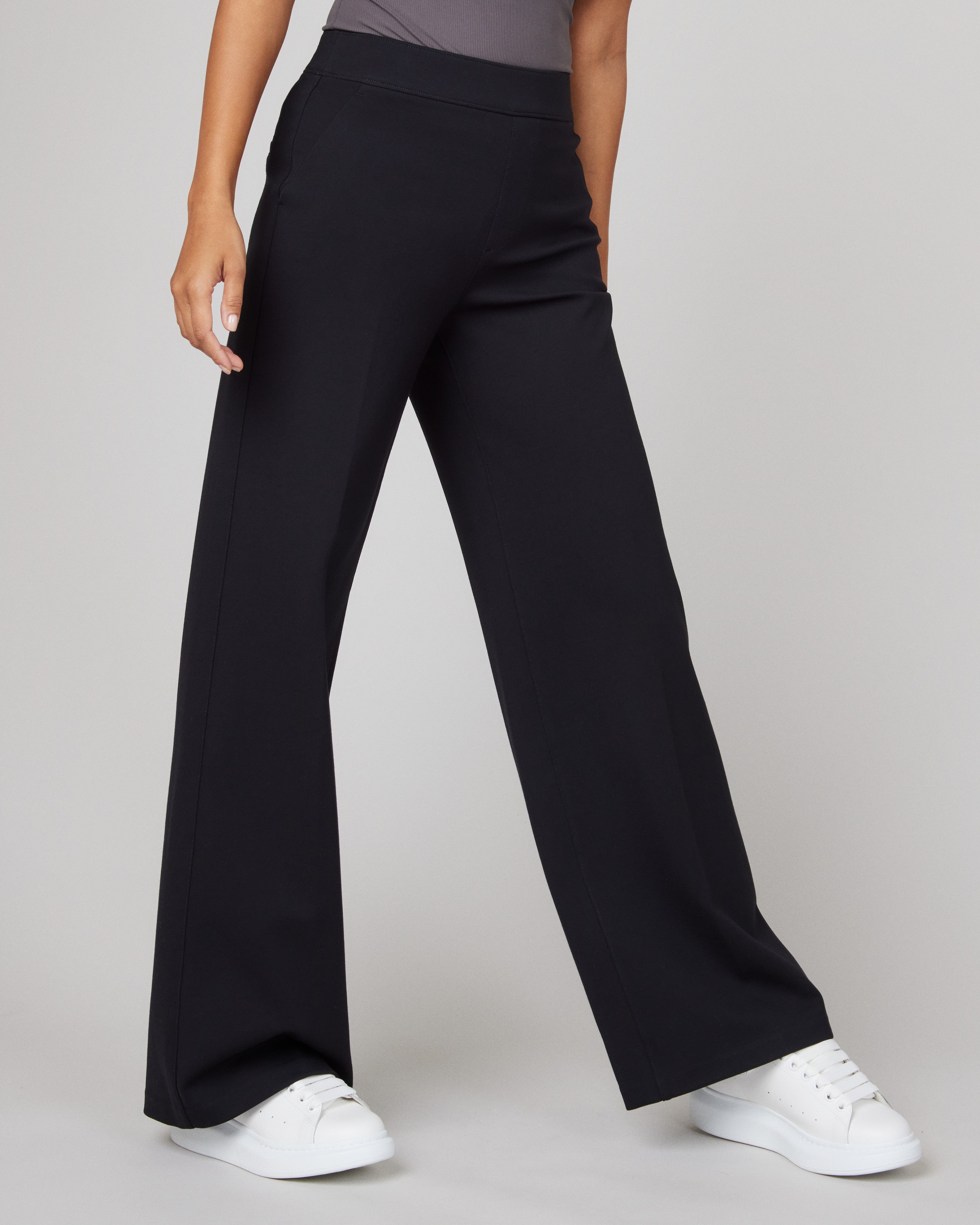 Designed with smoothing premium ponte fabric, this totally machine-washable Wide Leg pant features a comfortable pull-on design and offers a sleek look.