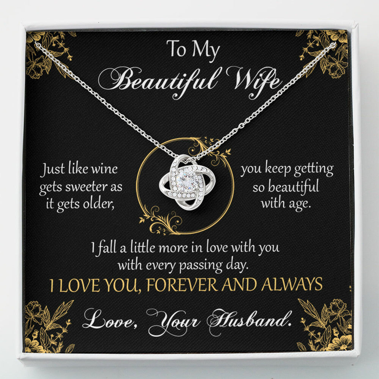 To My Beautiful Wife Love Knot Necklace Gift Set for Her "I Love You Always And Forever"