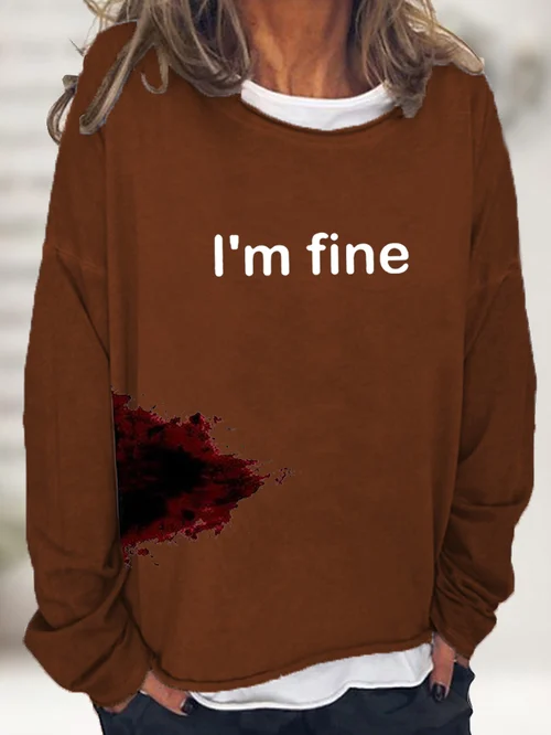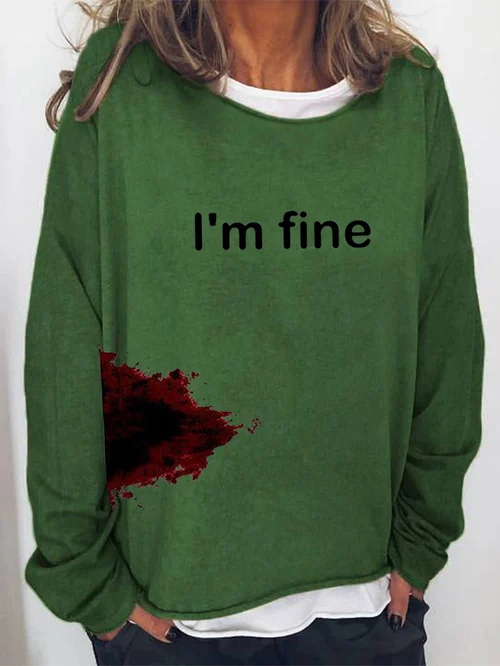 Women's Halloween Humor Funny Bloodstained I'm Fine Printed Long Sleeve T-Shirt
