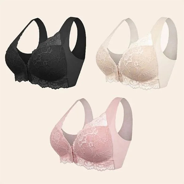 WOOBILLY® FRONT CLOSURE '5D' SHAPING PUSH UP COMFY WIRELESS BEAUTY BACK BRA(BUY 1 GET 2 FREE)(3 PACK)